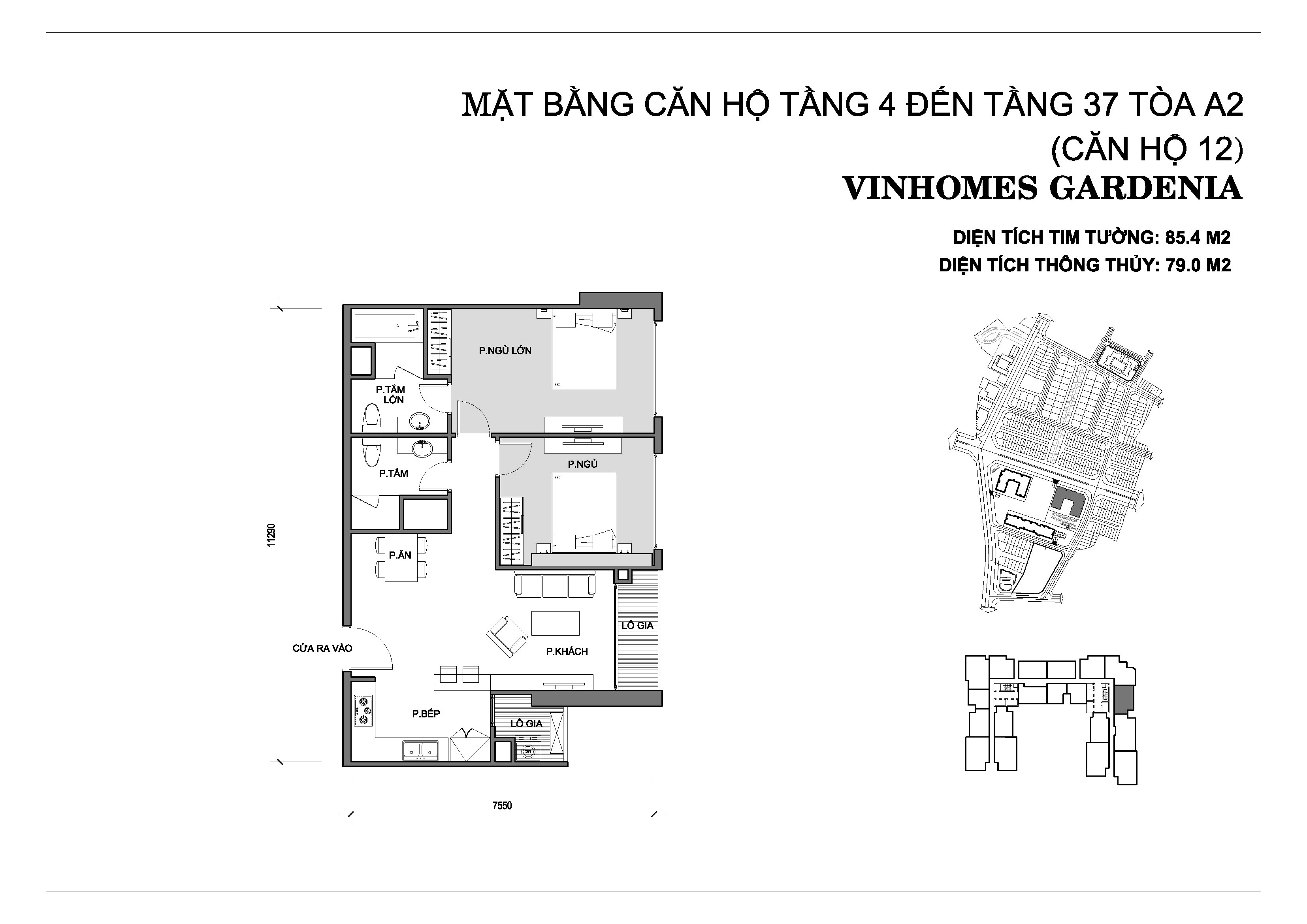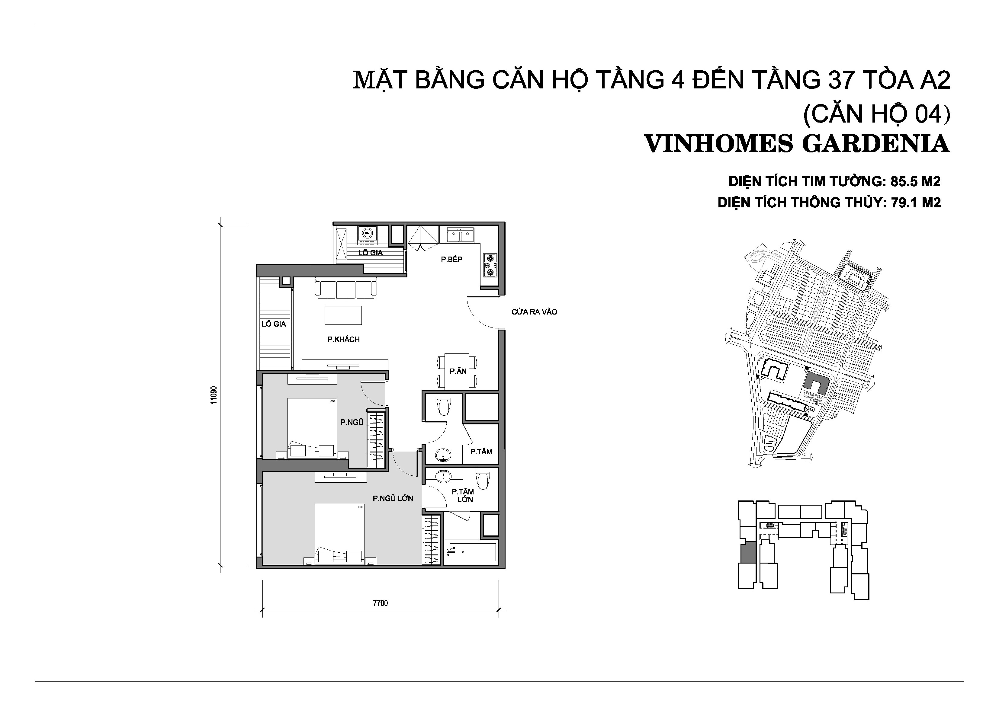 Căn hộ 2 phòng ngủ: 11 căn, diện tích từ 80,9 m2 đến 88,9 m2, Tổng có 407 căn hộ.