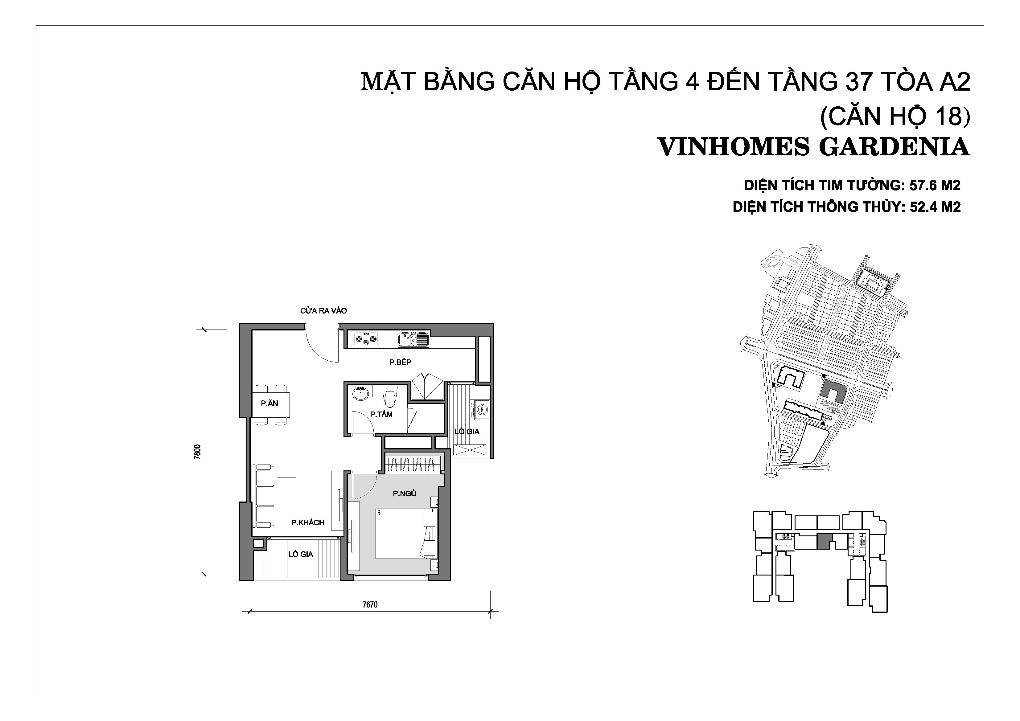Căn hộ 1 phòng ngủ: 4 căn, diện tích 55 – 60 m2, Tổng có 76 căn hộ.